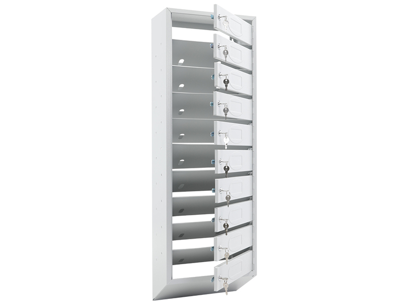 - Каждая секция имеет дверцу, запирающуюся индивидуальным ключевым замком (2 ключа в комплекте).